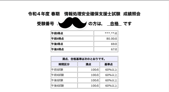 今日は、令和4年度春季情報安全確保支援士試験の結果報告についての日。