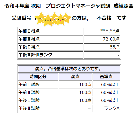 すっかり忘れていましたが、今年受けたプロジェクトマネージャー試験の結果が出てました。